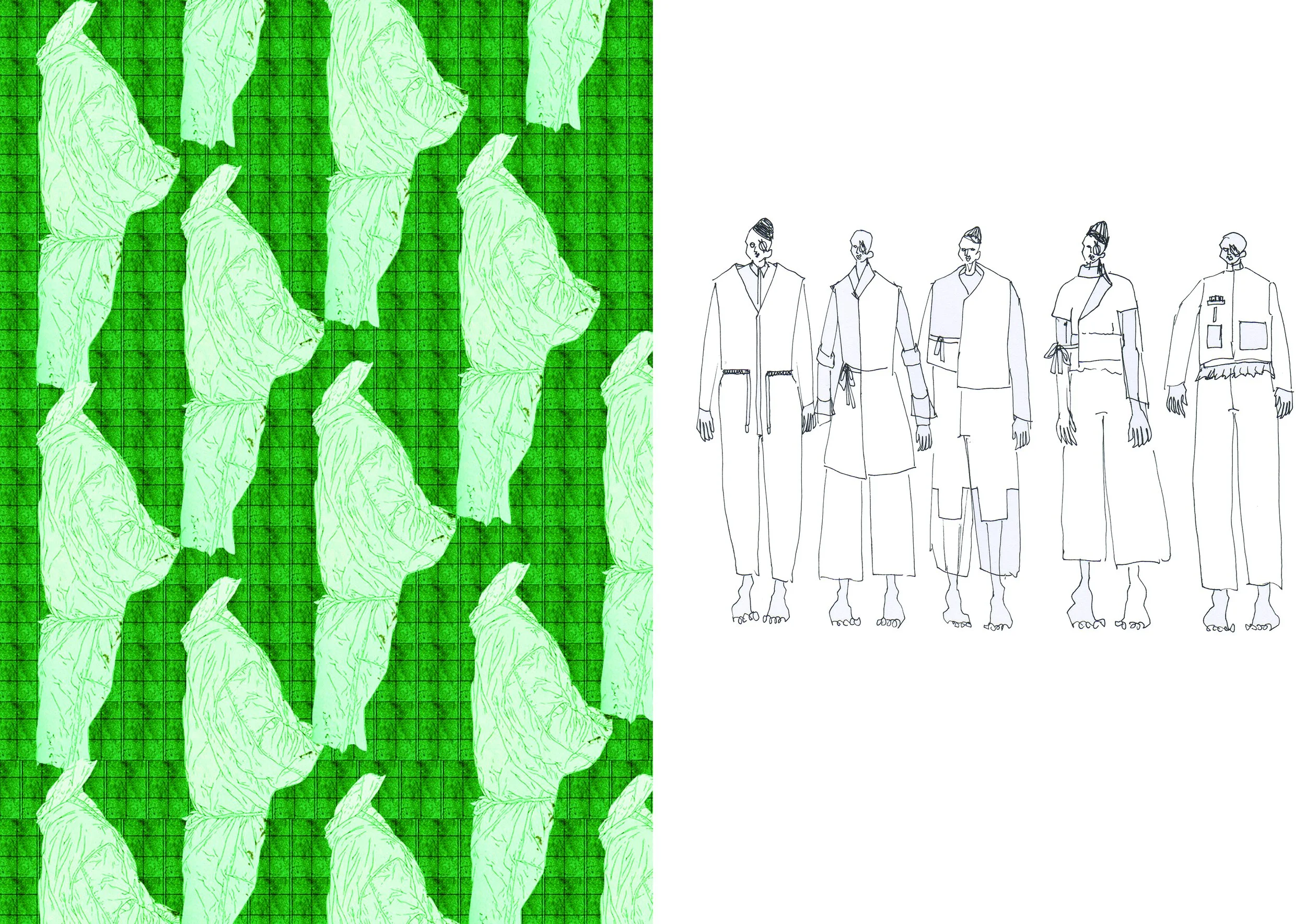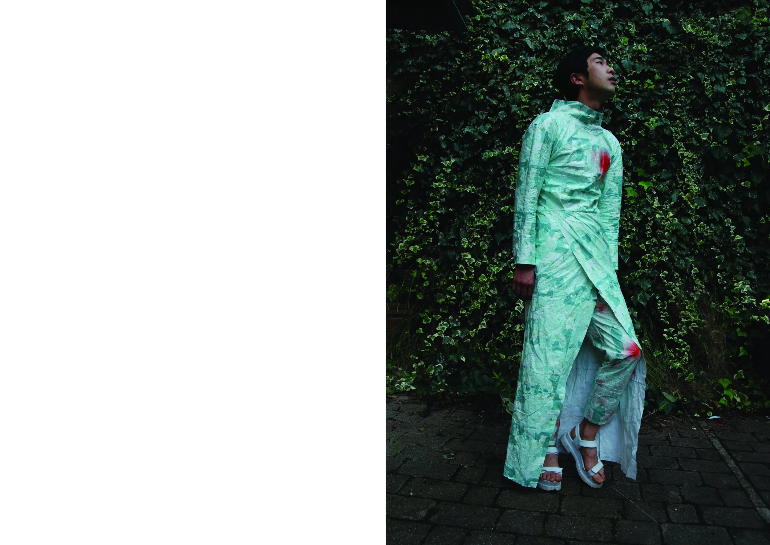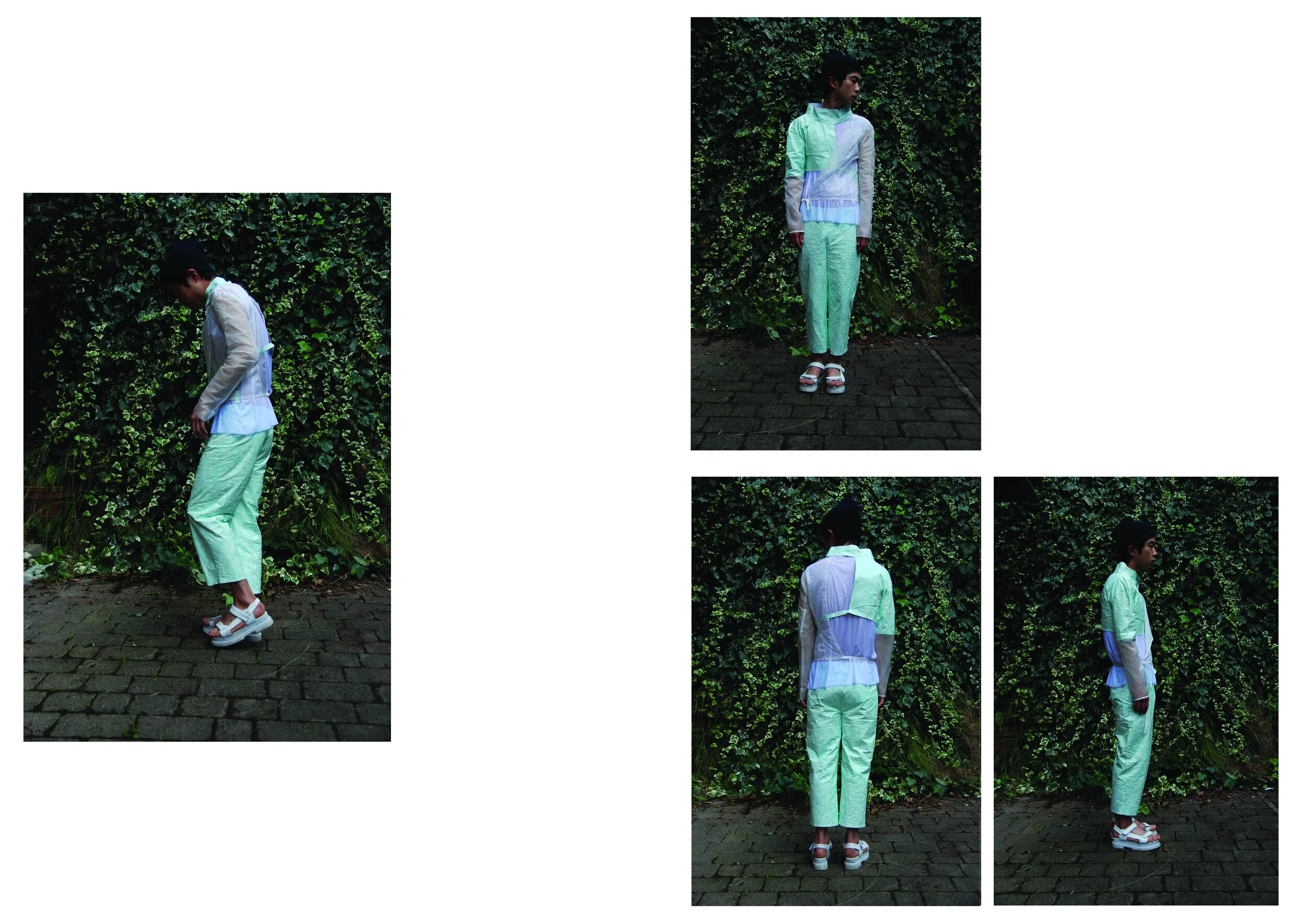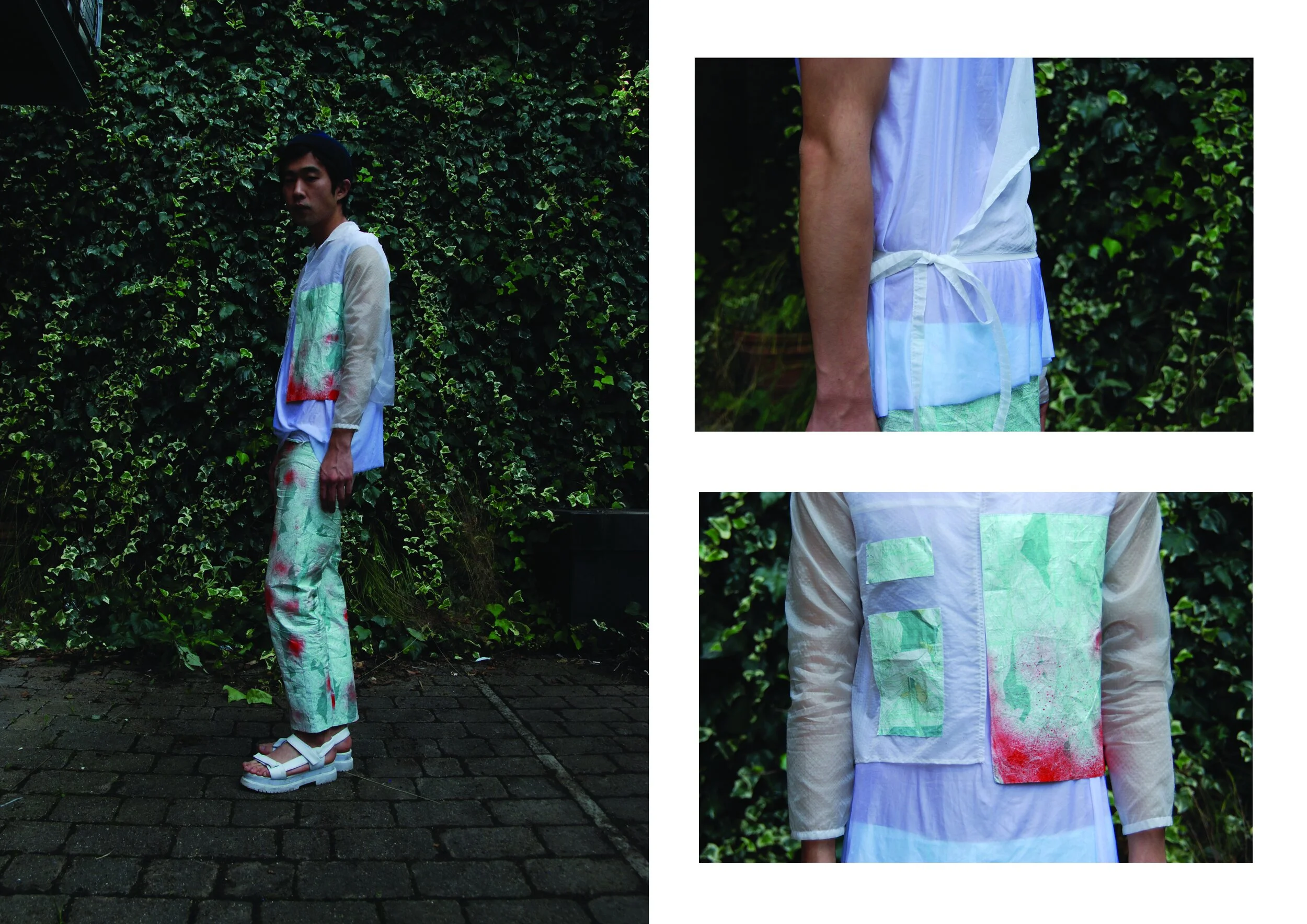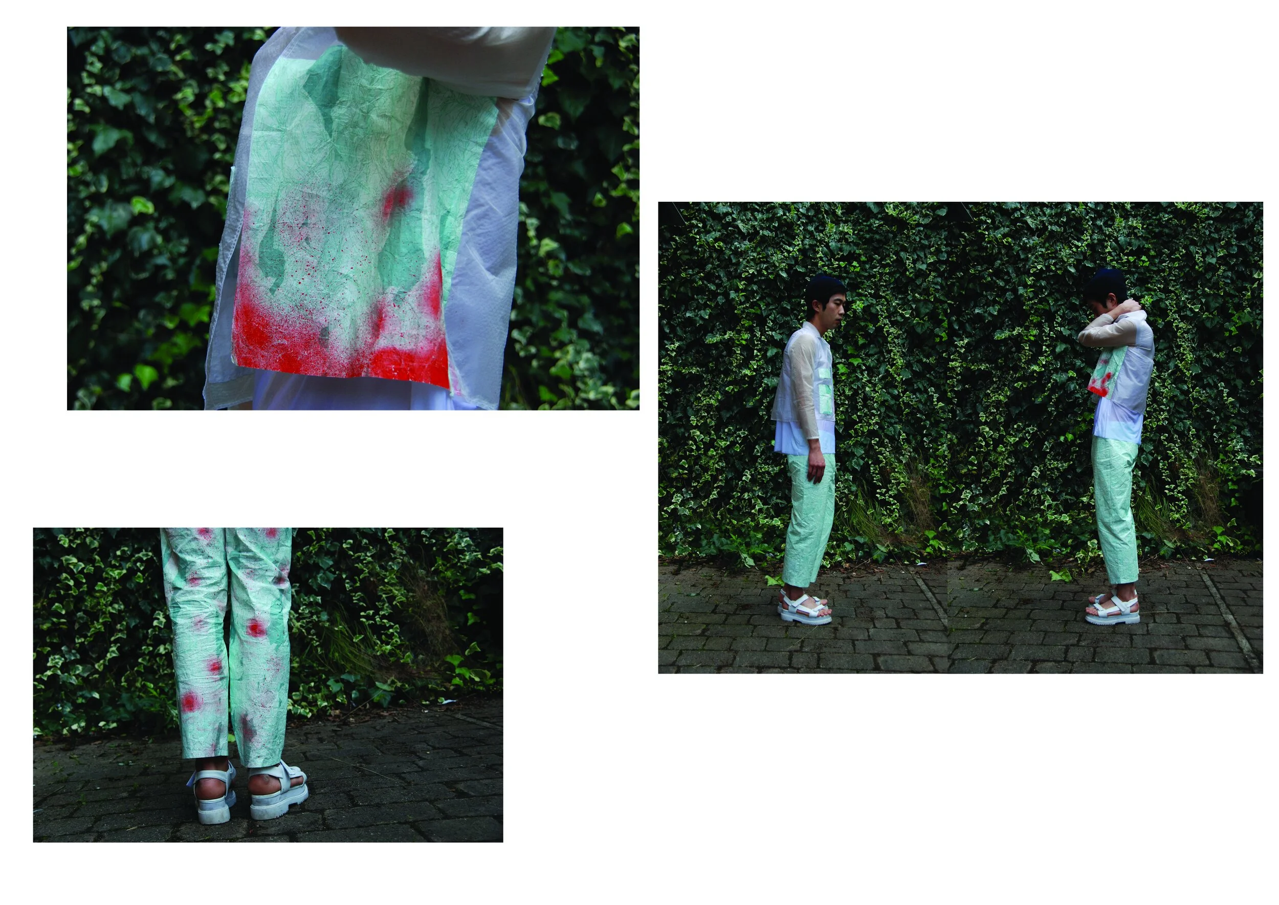 A menswear print collection of residual image of complementary color. An afterimage in general is an optical illusion that refers to an image continuing to appear after exposure to the original image has ceased. Prolonged viewing of the colored patch induces an afterimage of the complementary color (for example, red color induces a greenish afterimage).