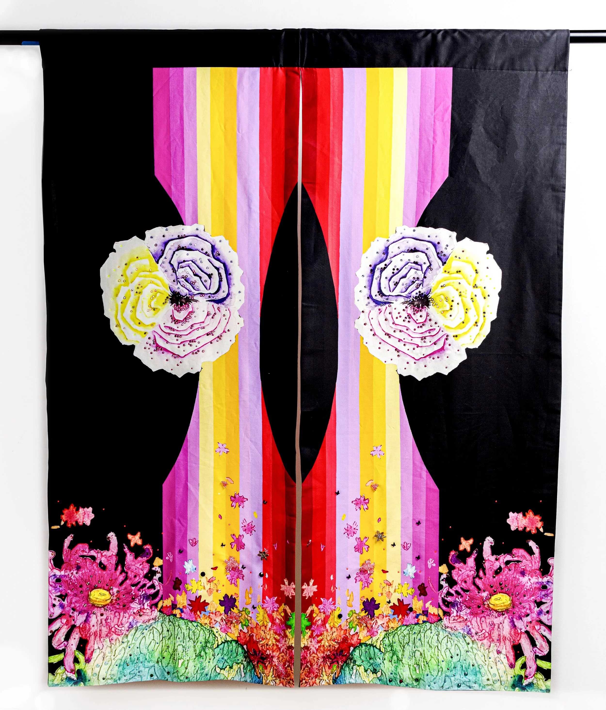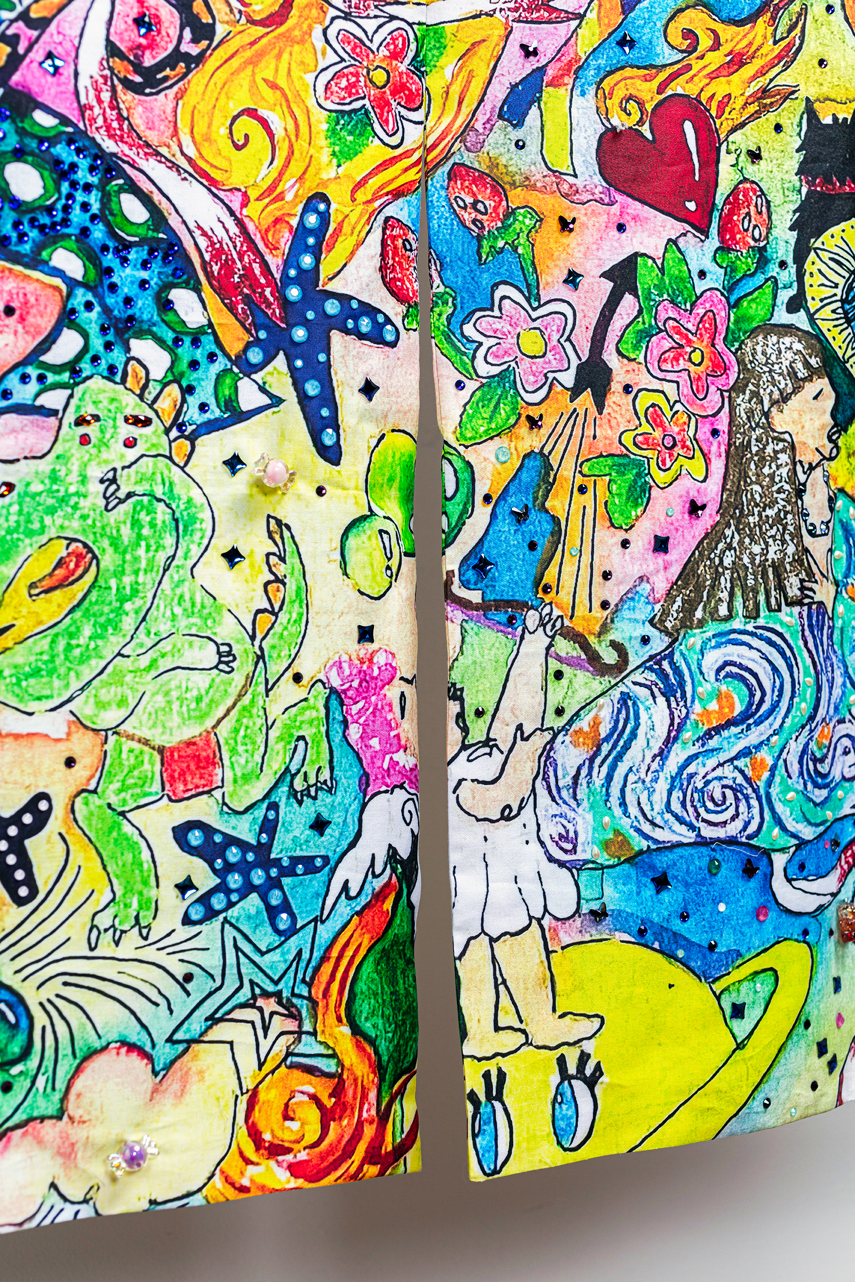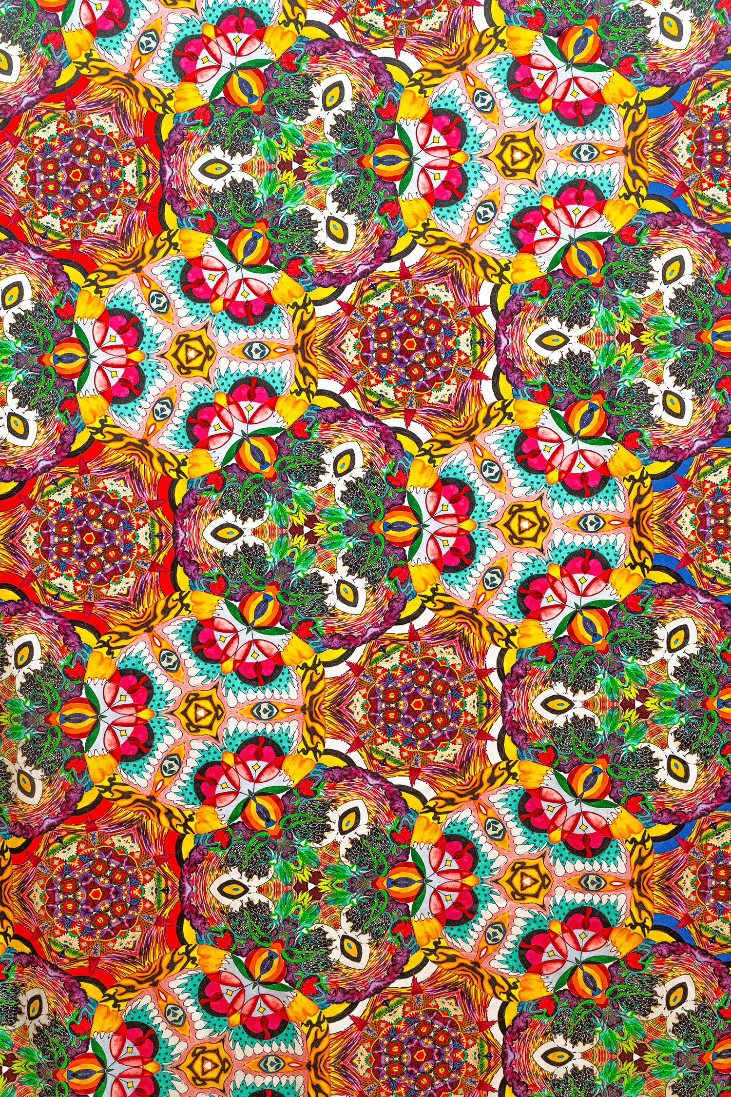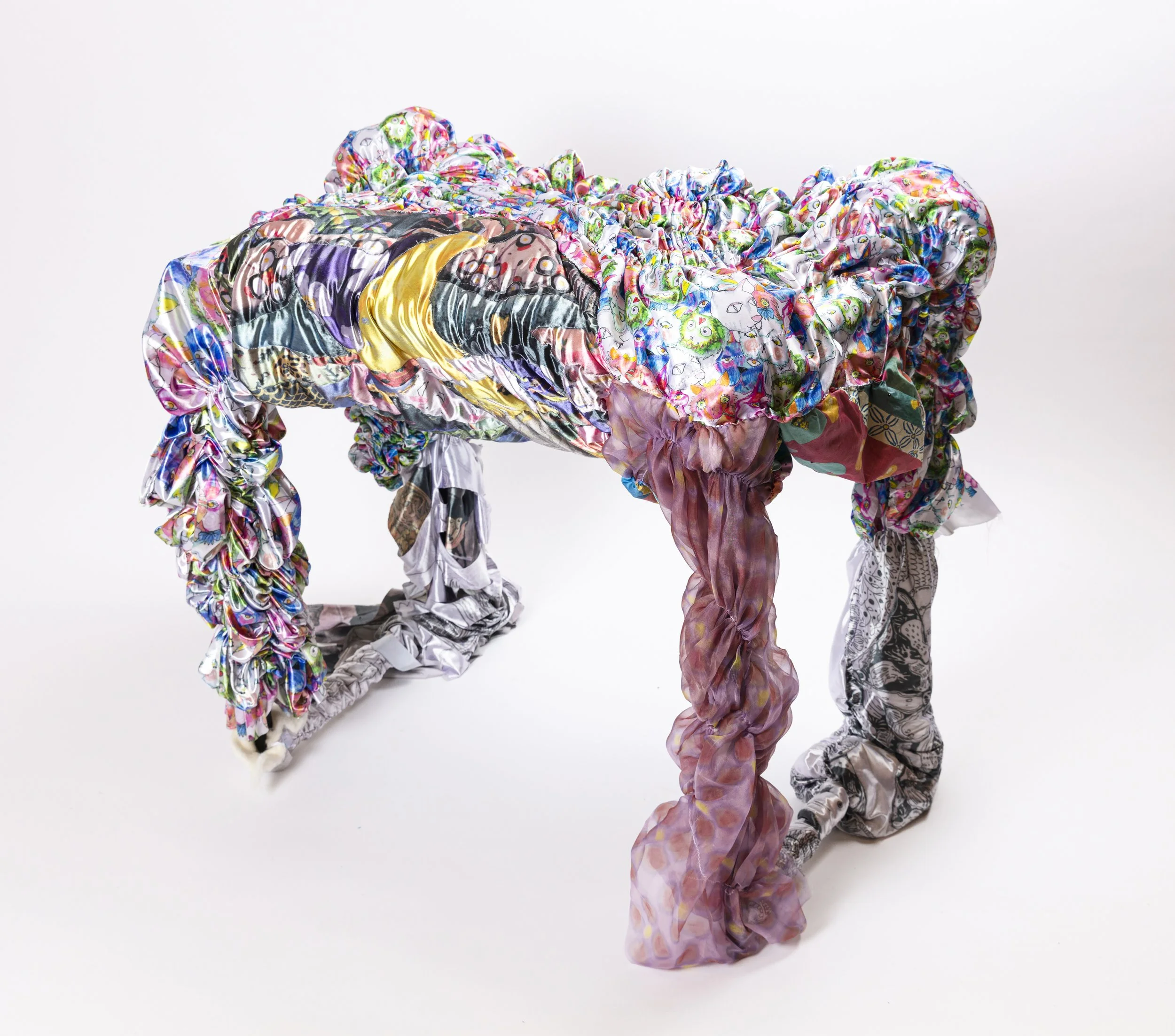 Diversity (Hand drawn illustrations digitally printed on recycled satin jersey and ruching)