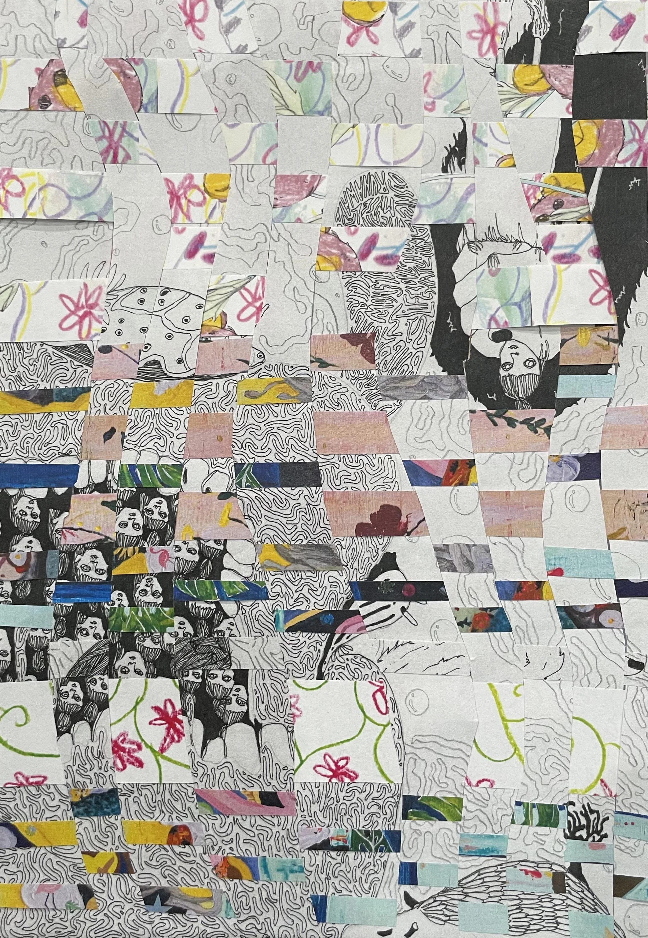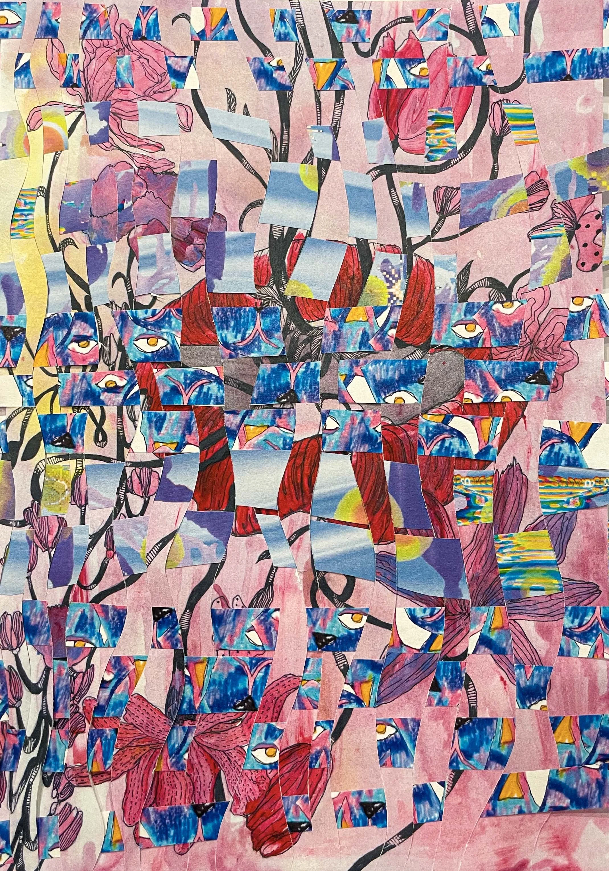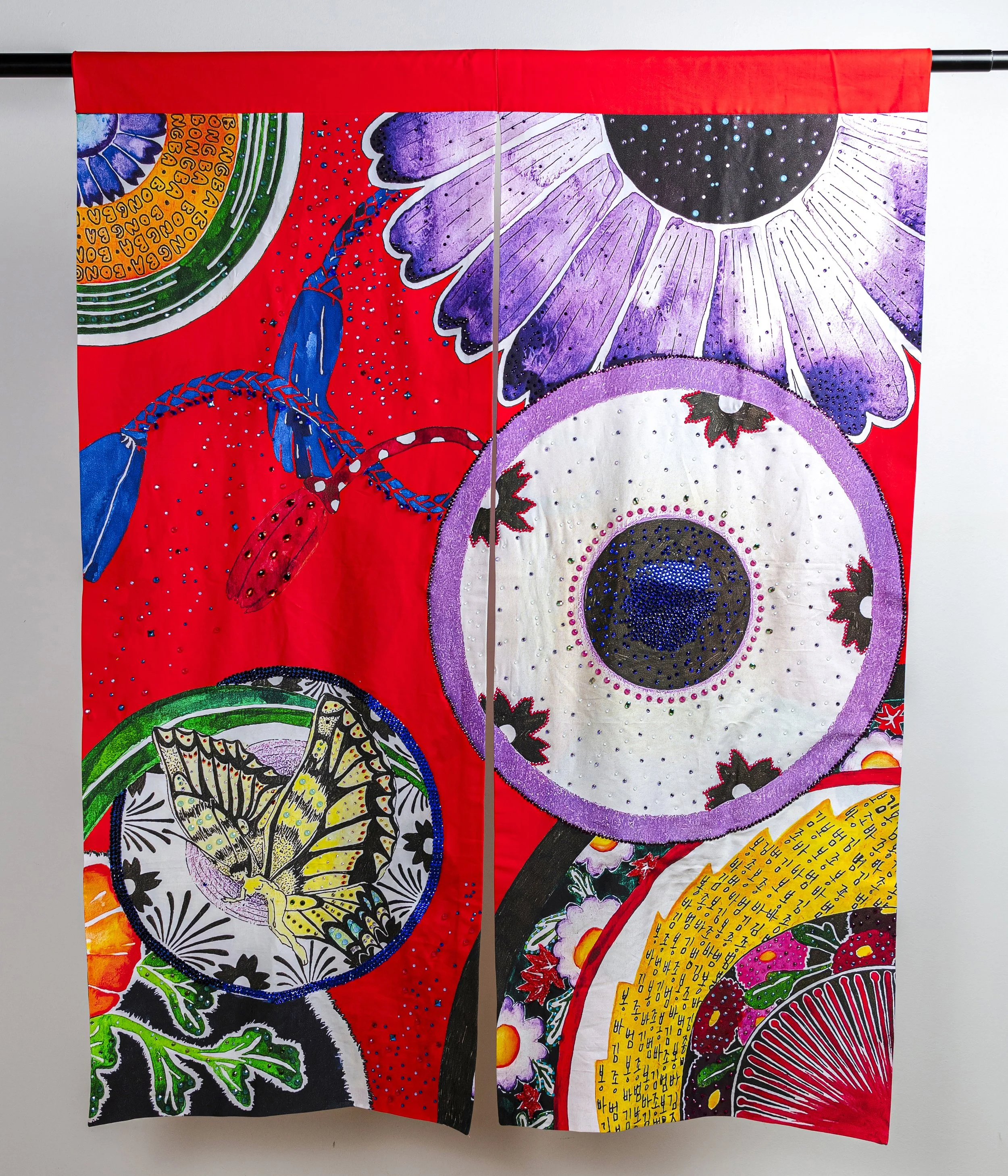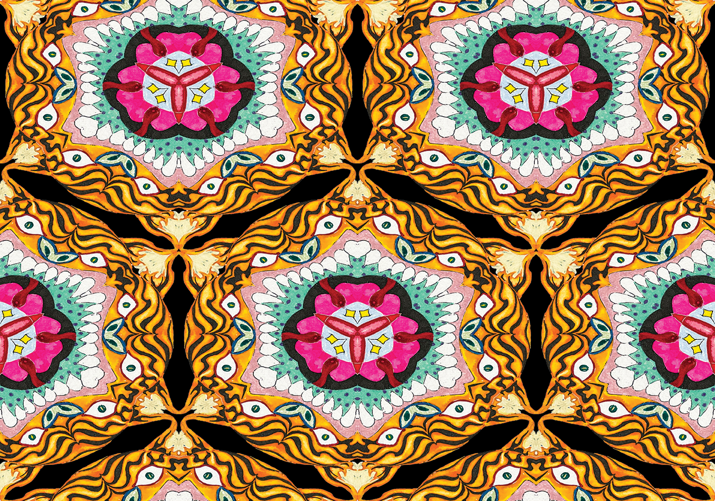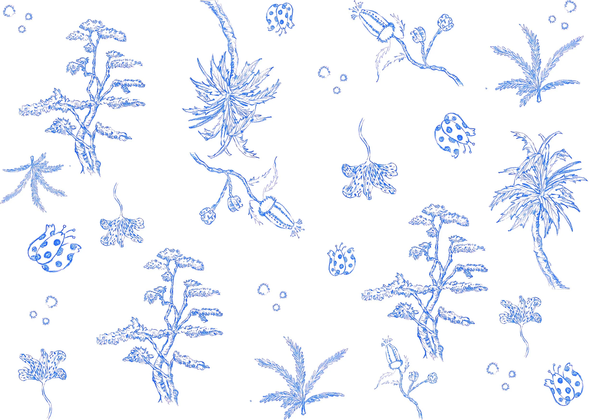 Diversity (Hand drawn illustrations digitally printed on recycled satin jersey and ruching)